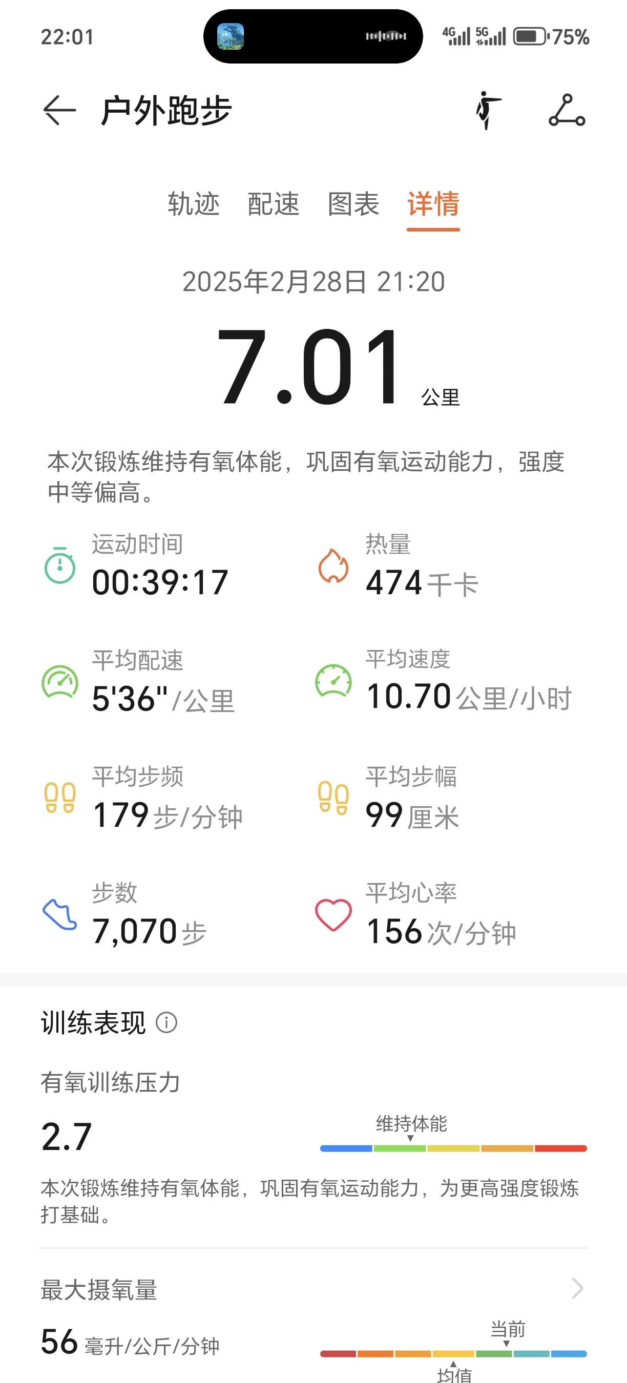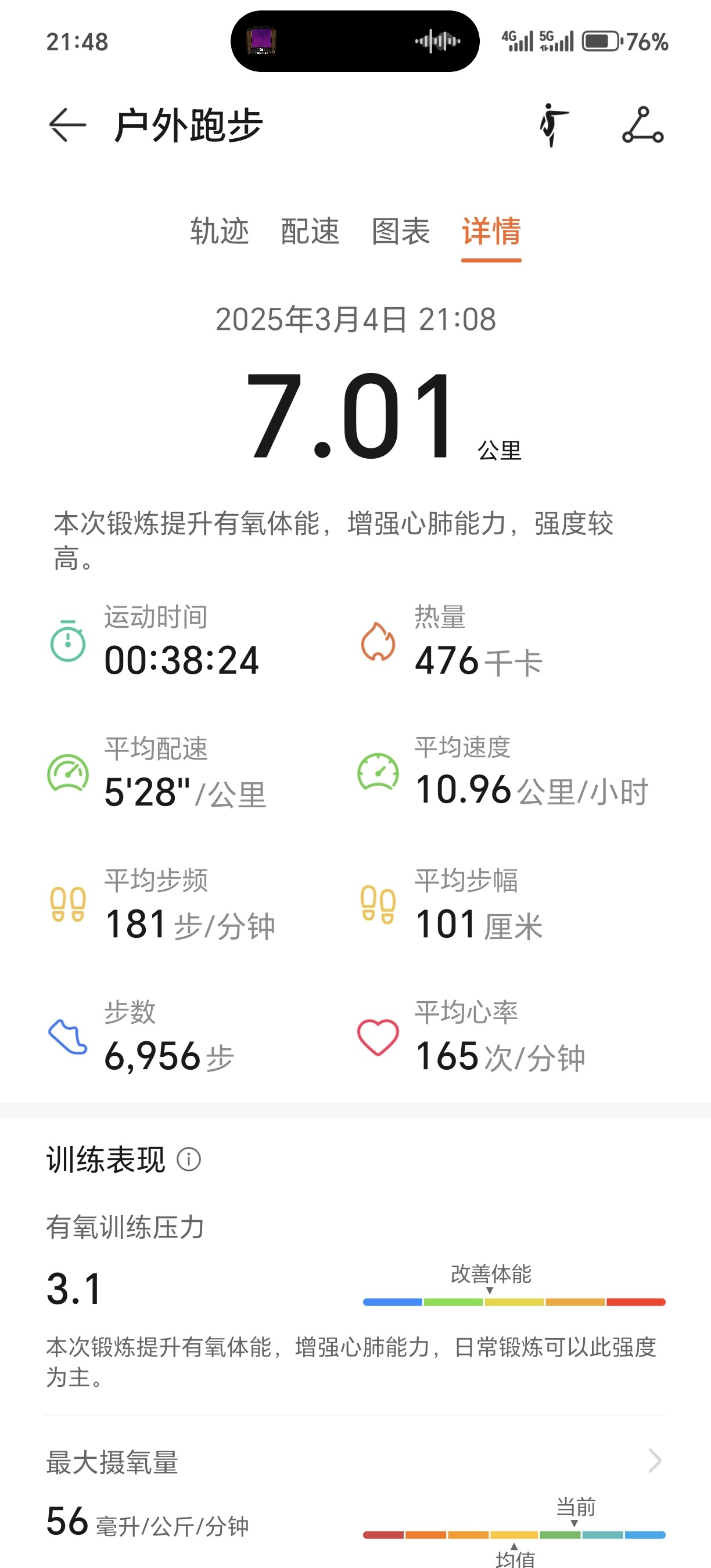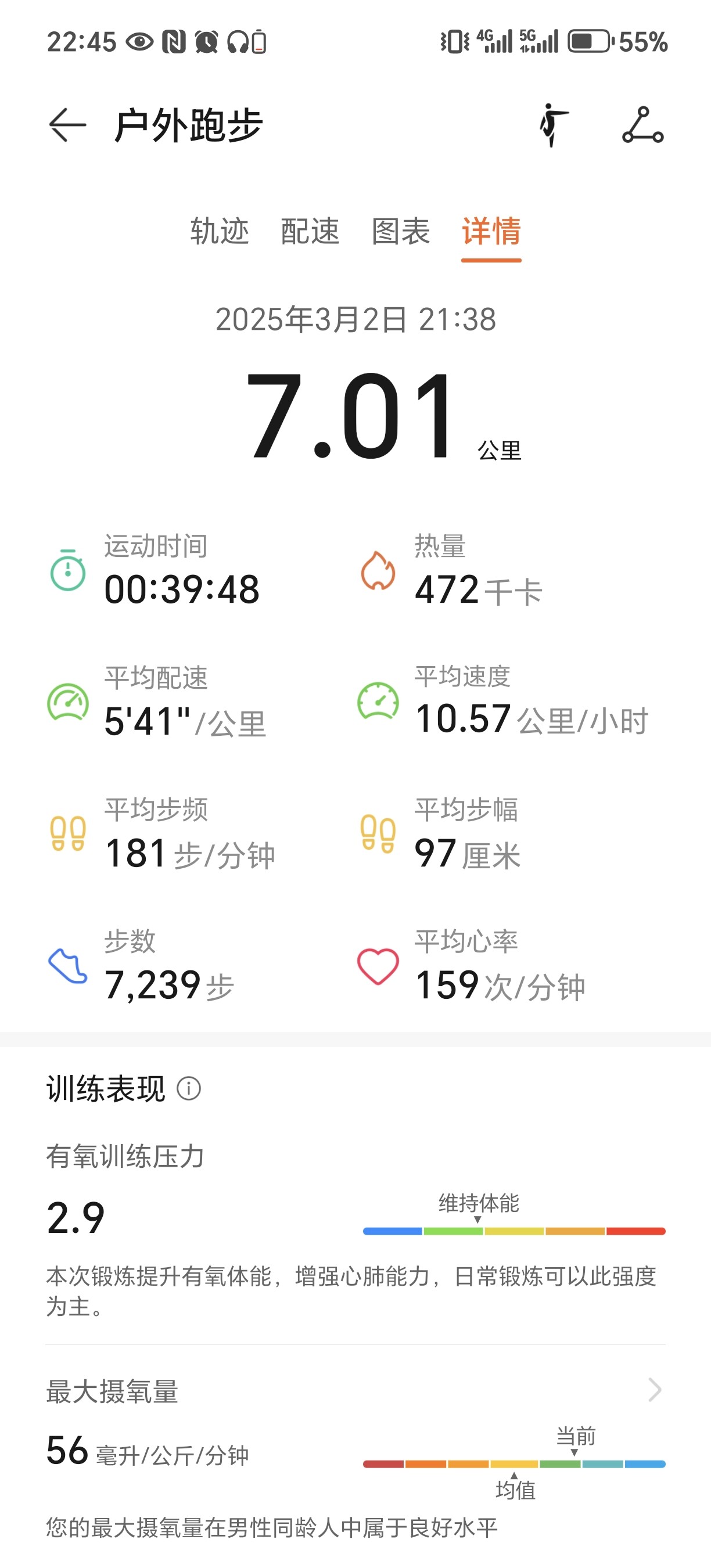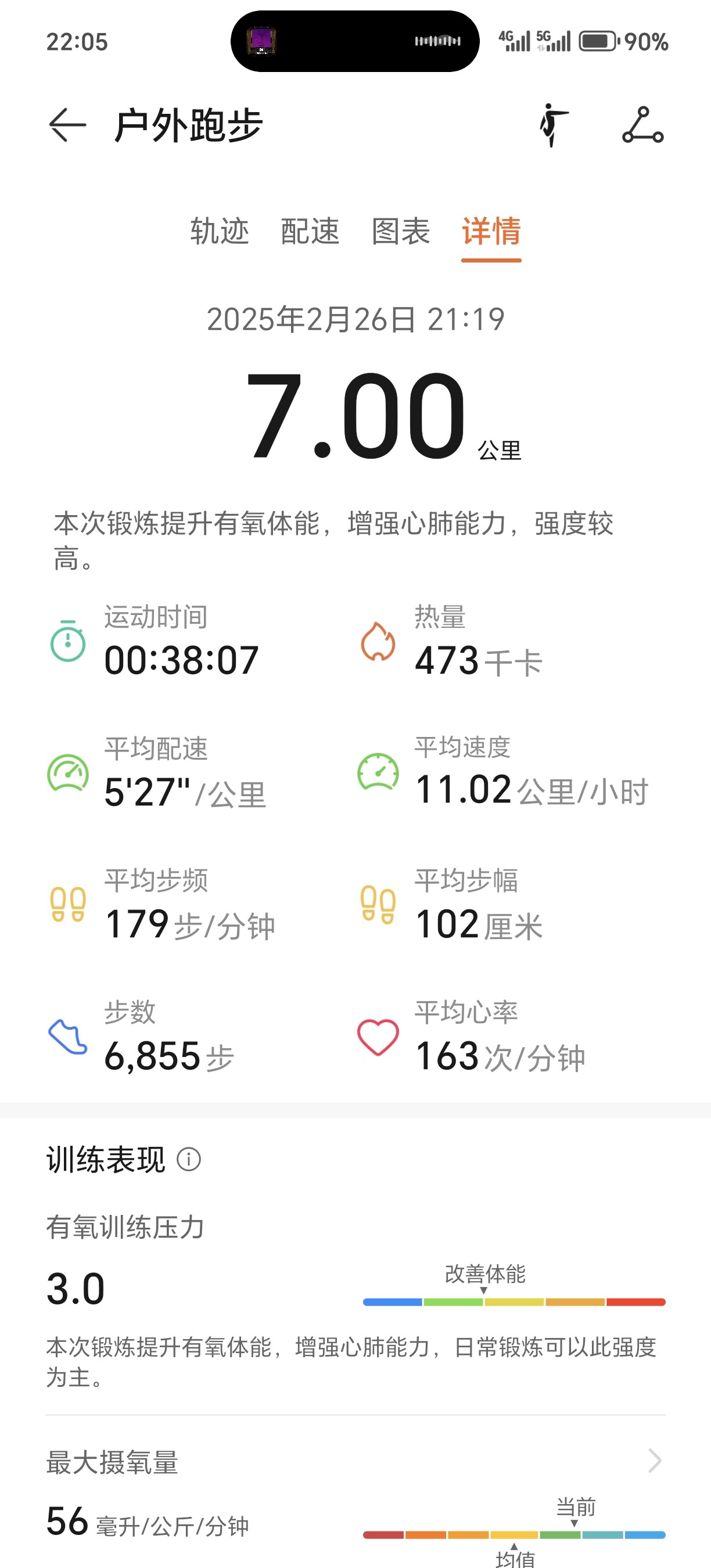 昨天跑五公里控心率160左右,配速也是突破7分配了捏 ![]()