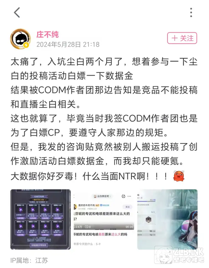 也挺难说的,之前不是有藤子的CODM的UP去玩了尘白后做了个尘白视频就拿不到CODM的钱吗 ![]()
