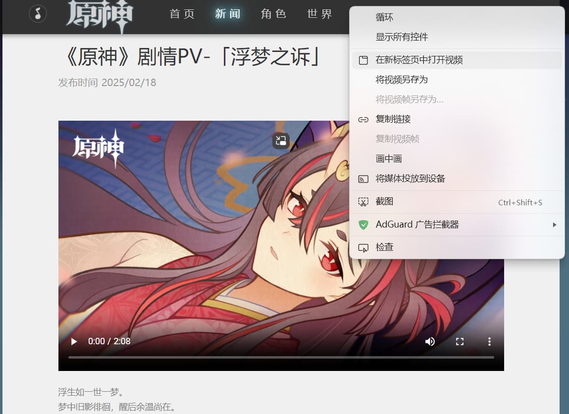 有些官网是能直接选中文本,比如原神、崩铁,有些则限制了这个功能,比如绝区零、崩三米游社,还是得用F12来获取原视频标题。