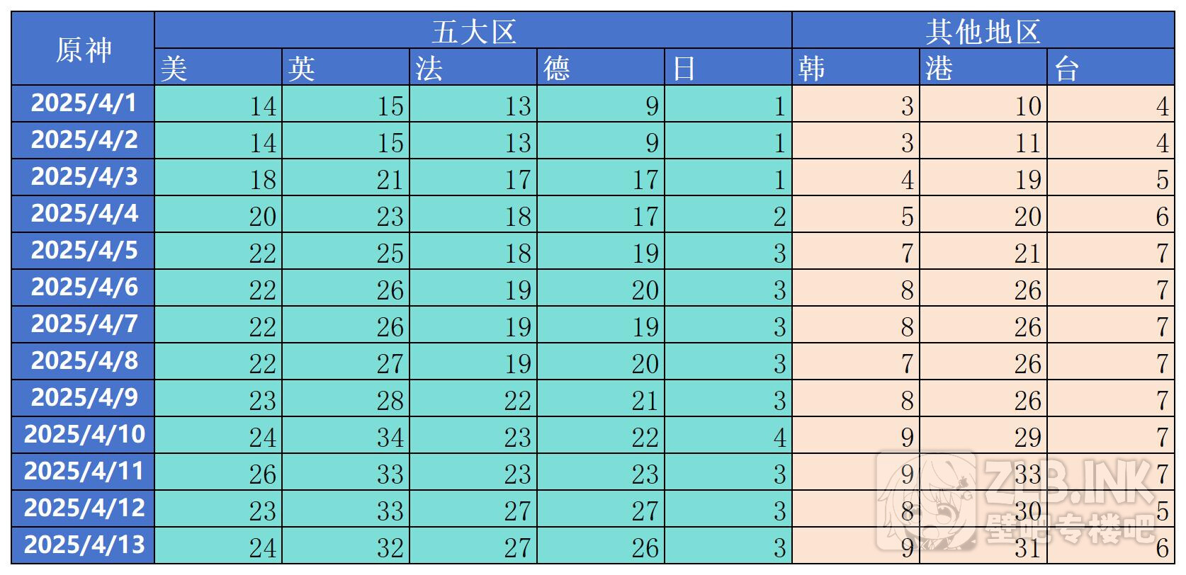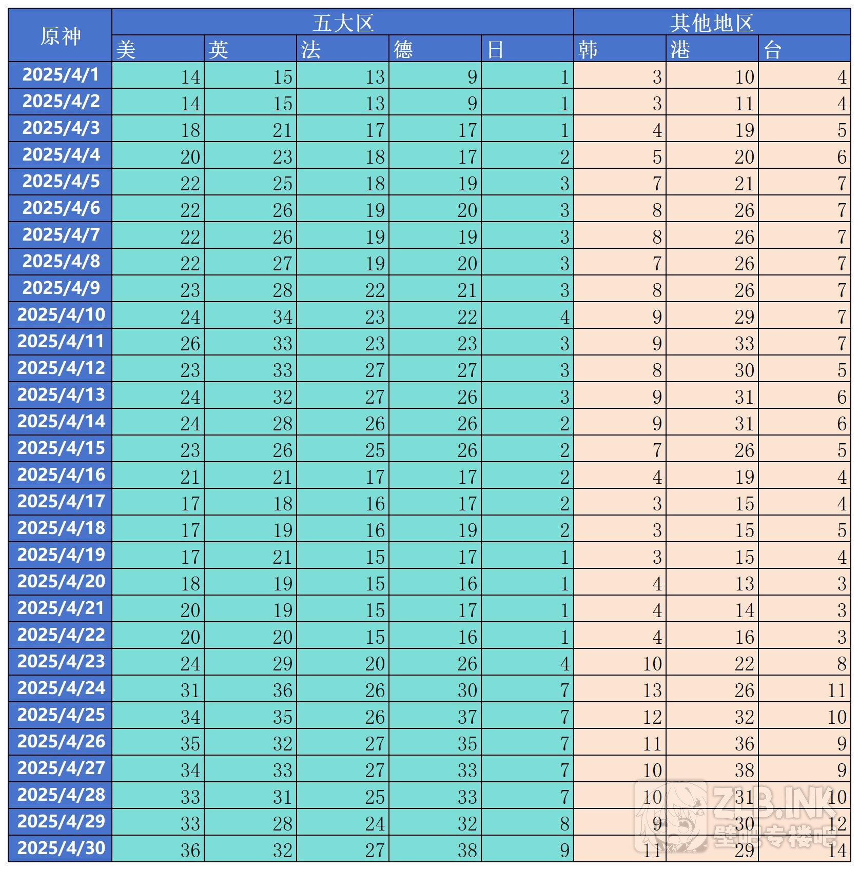 2025年4月份原神,绝区零,崩坏星穹铁道,漫威争锋,无限暖暖,鸣潮