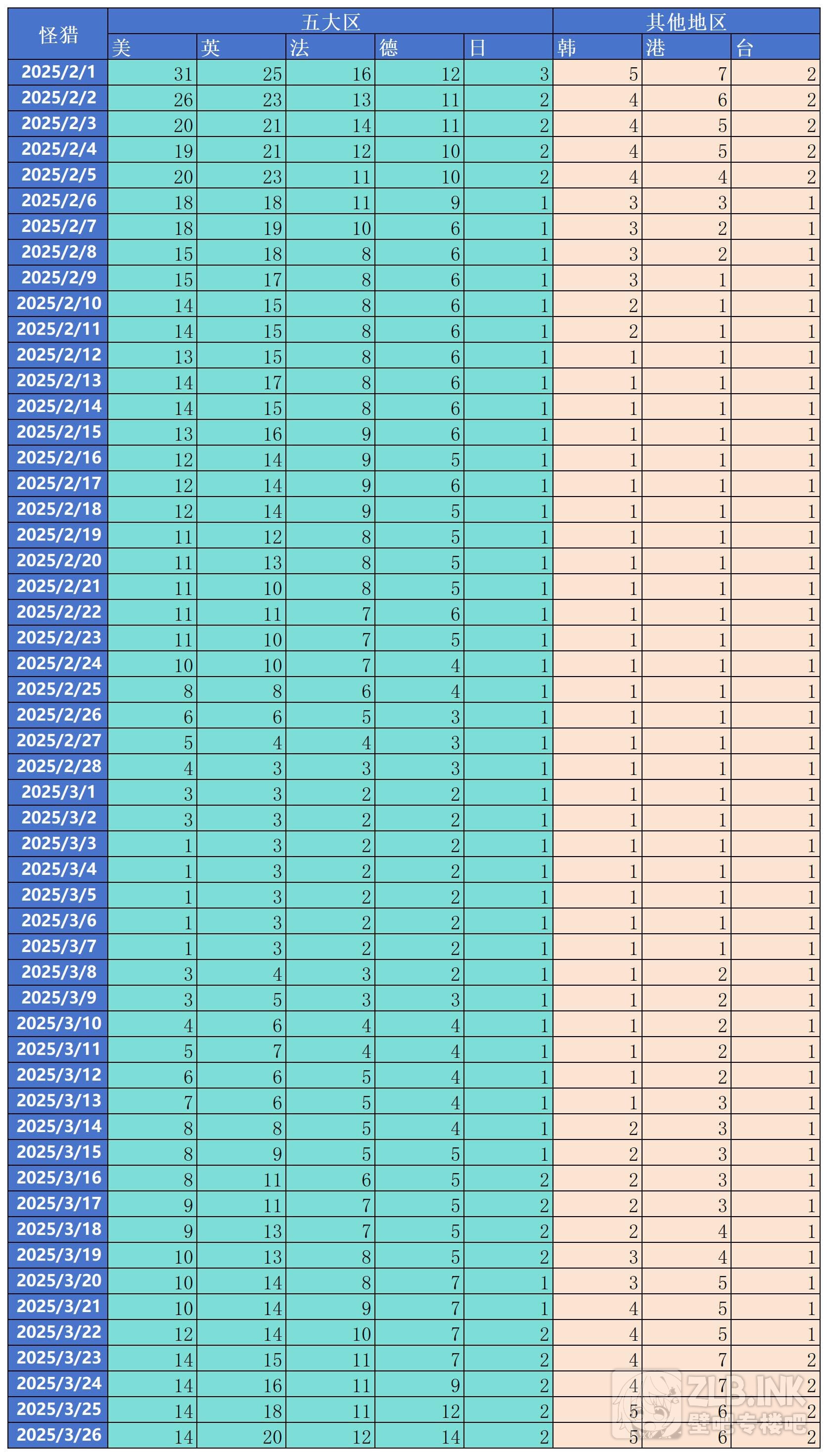 我这里还有怪猎的一些数据,我也发在这吧