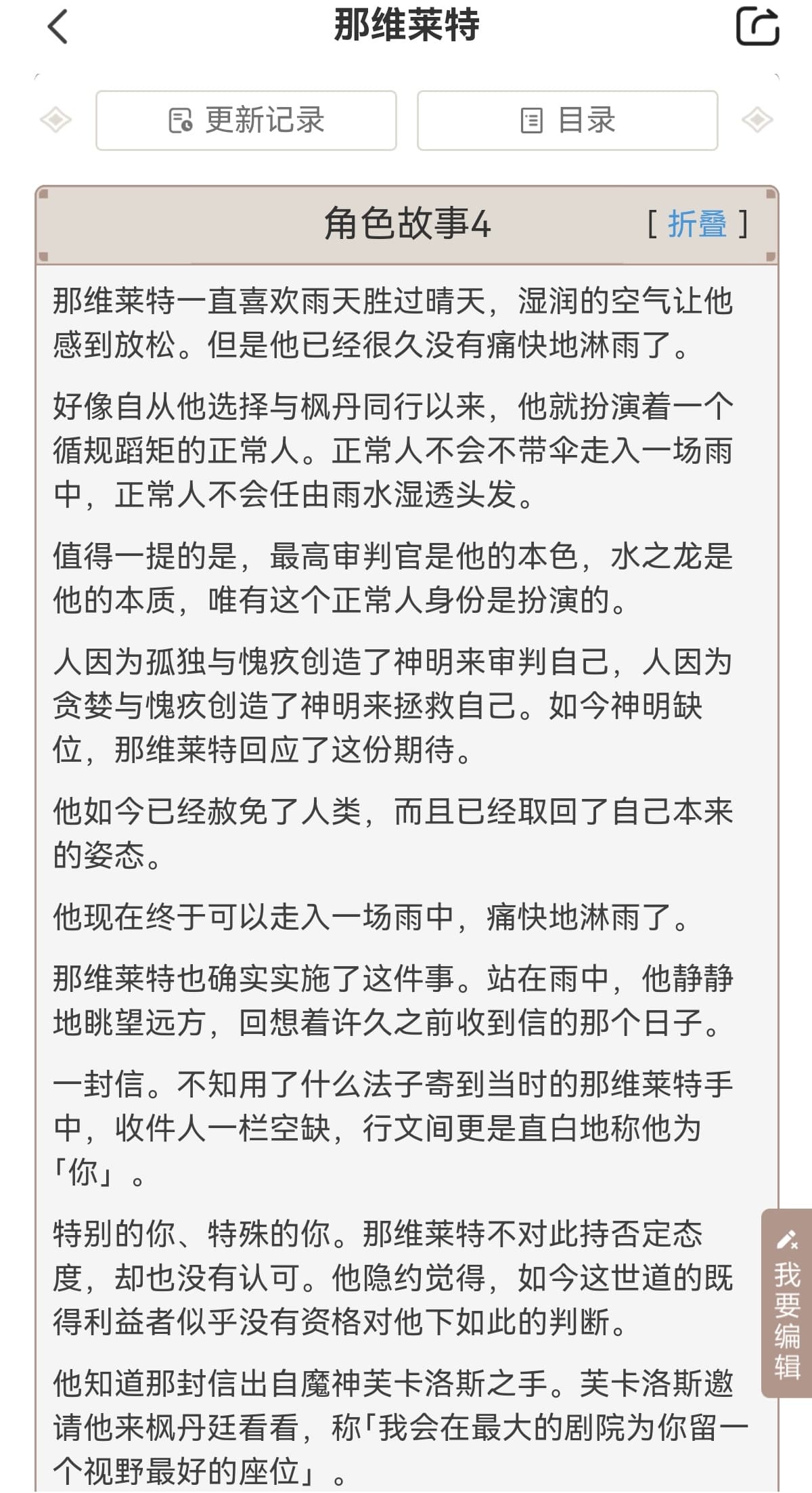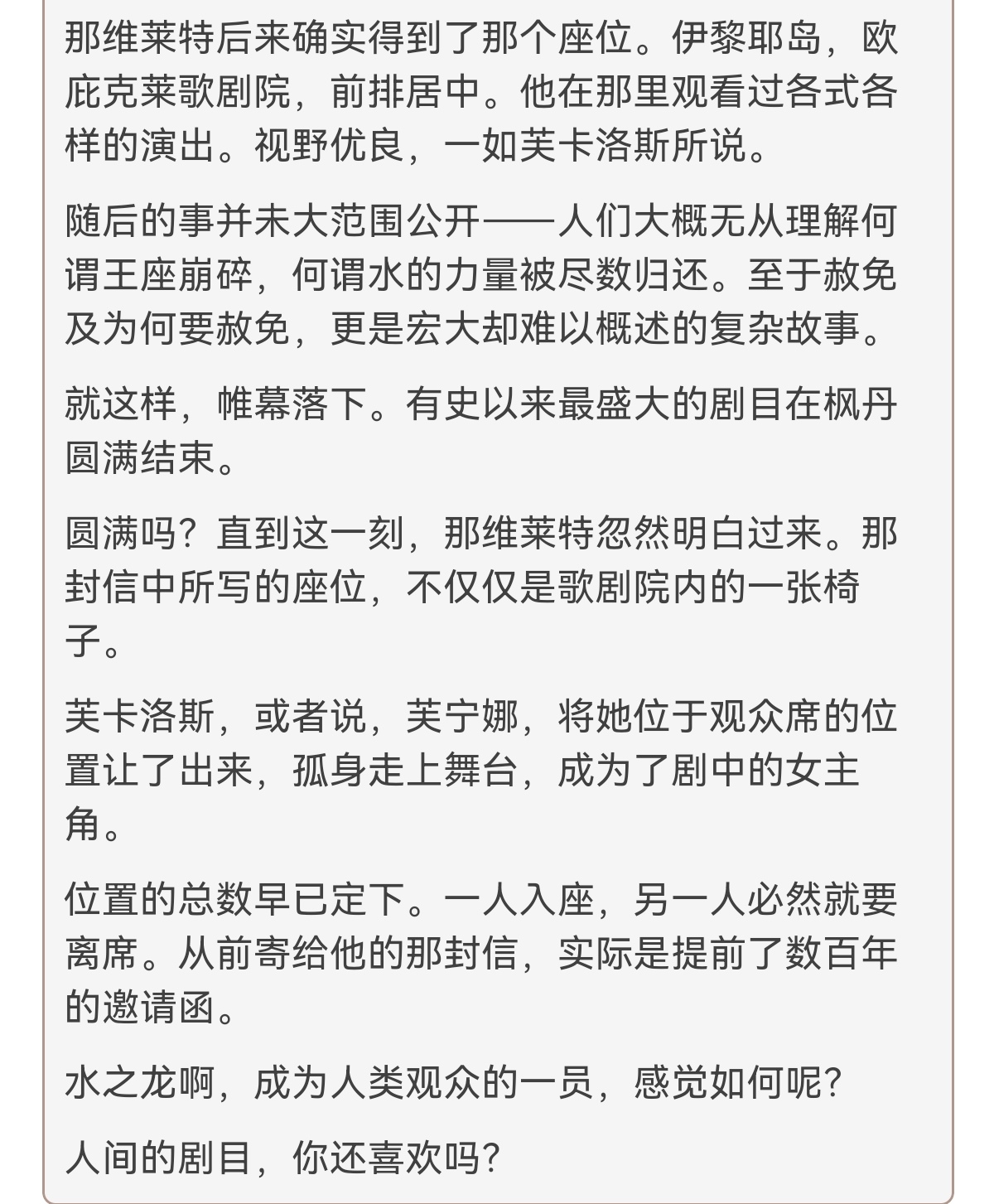 那维的传说我一直都很喜欢 那段播片配合“轻雨何故落”瞬间就有氛围感 那维作为一个孤独的人走过漫长的枫丹历史 经历无数生离死别 最后想到的的芙的引导 见到沃特雷放下了心结天空转晴 后面还有个跟芙书信的小互动也颇有种老父亲的无奈感非常有爱