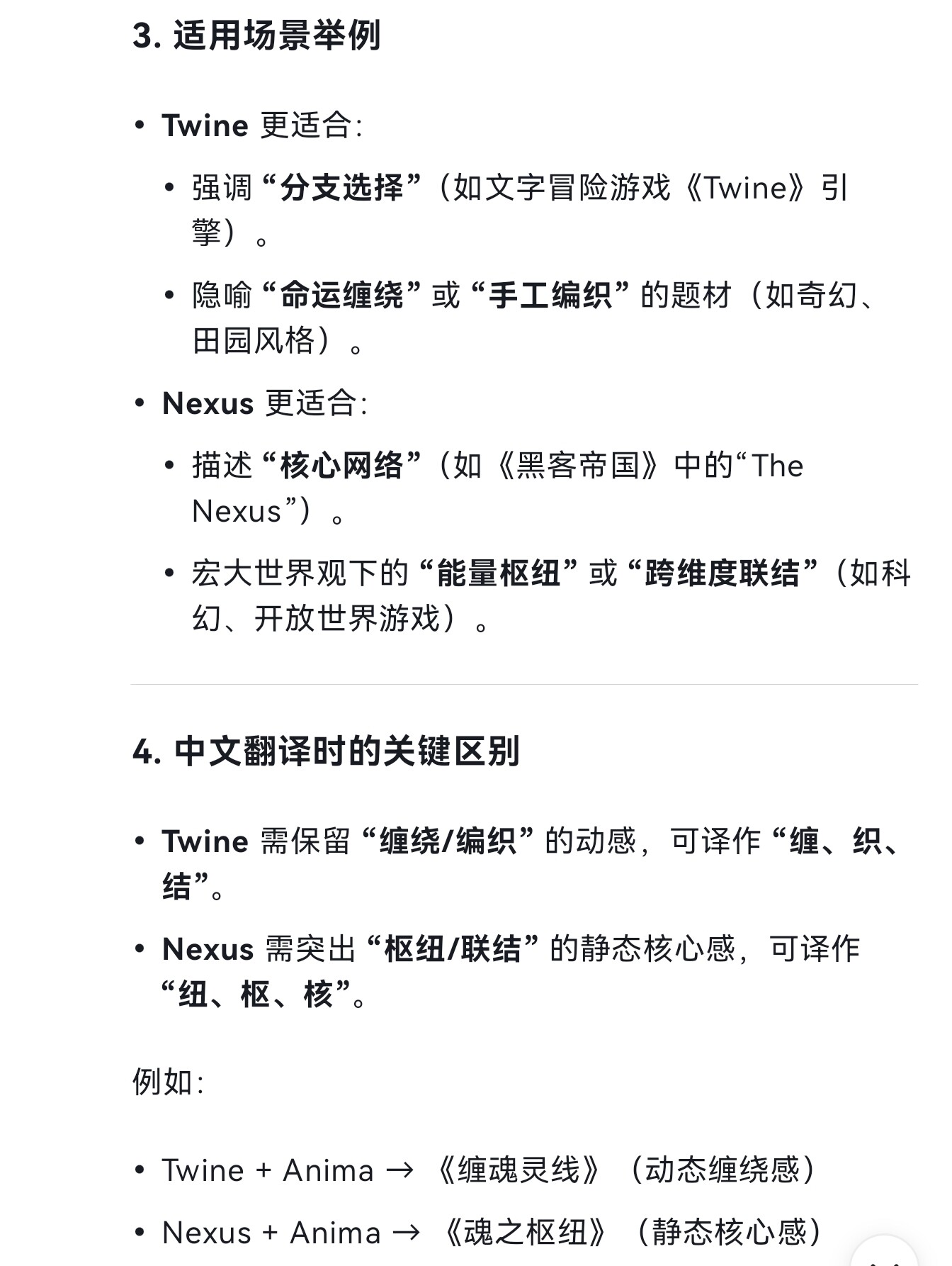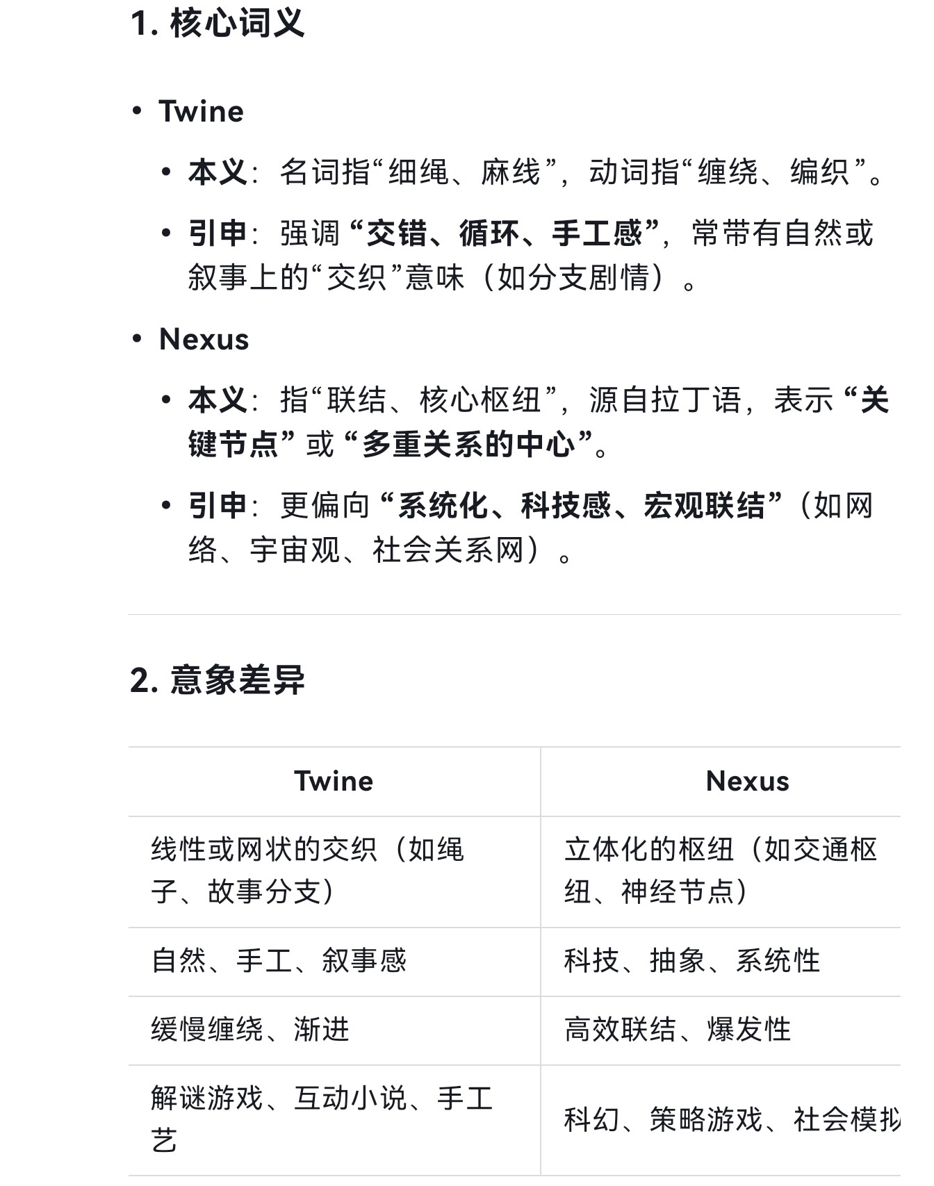 twine和nexus的表面意思有相近之处(下图是DS做的语言分析,AI做这方面一般是靠谱的)