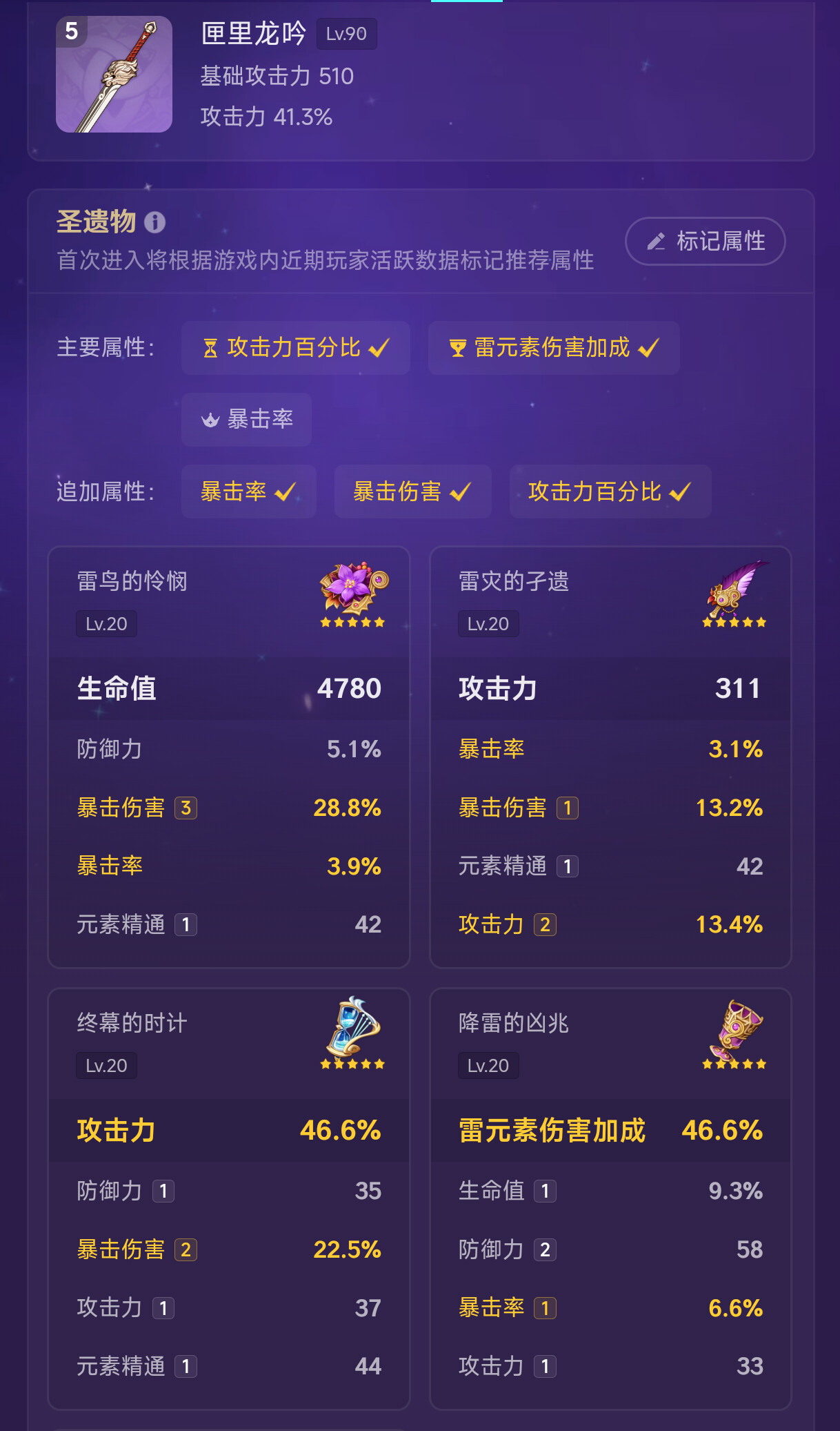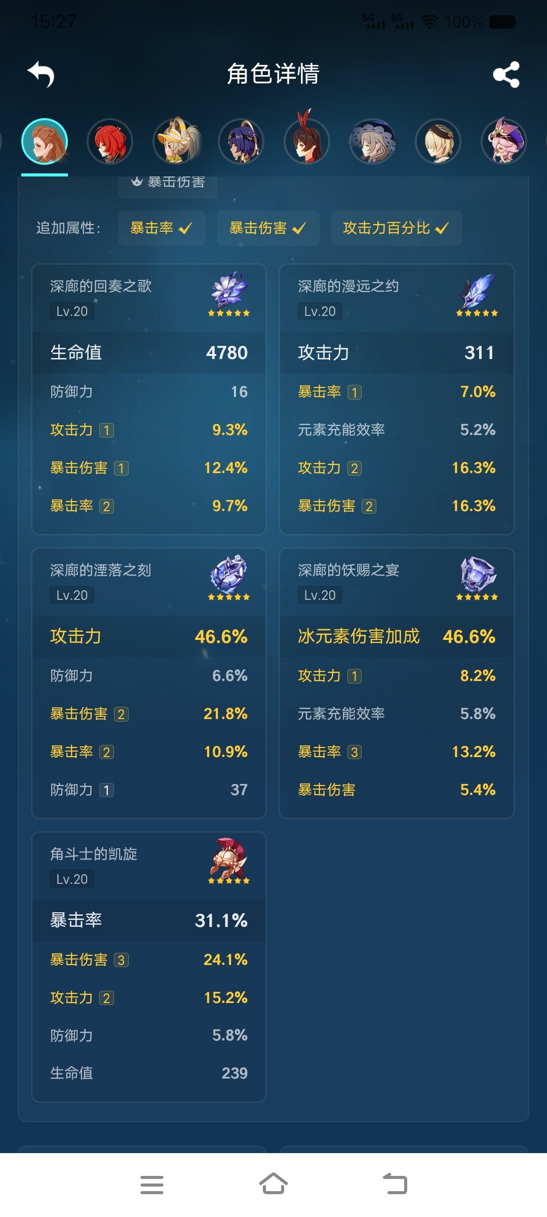 因为是刚入坑没过几个版本就歪出来了(抽纳西妲歪出来的),当时手里太多角色要练,所以没怎么刷圣遗物。同理我小草的圣遗物也不行