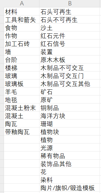 有个不算槽点的槽点就是不同玩家的分类习惯还真是天差地别。原本打算按照投影作者给的分类来,填充了几片怎么用怎么难受,索性结合老存档仓库的类别小改了一下,还是符合习惯的舒服。