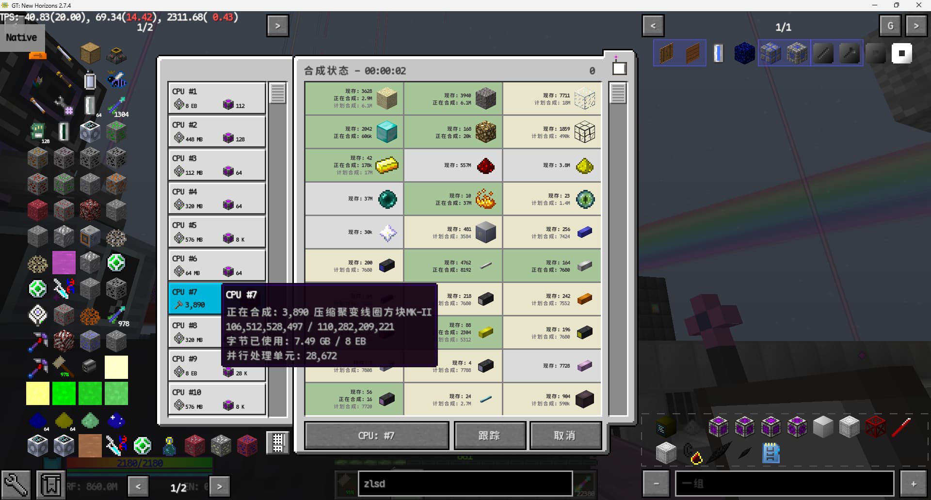 今天卸载了除了私人维度和主世界部分的全部区块,暂时回归了18-20的tps