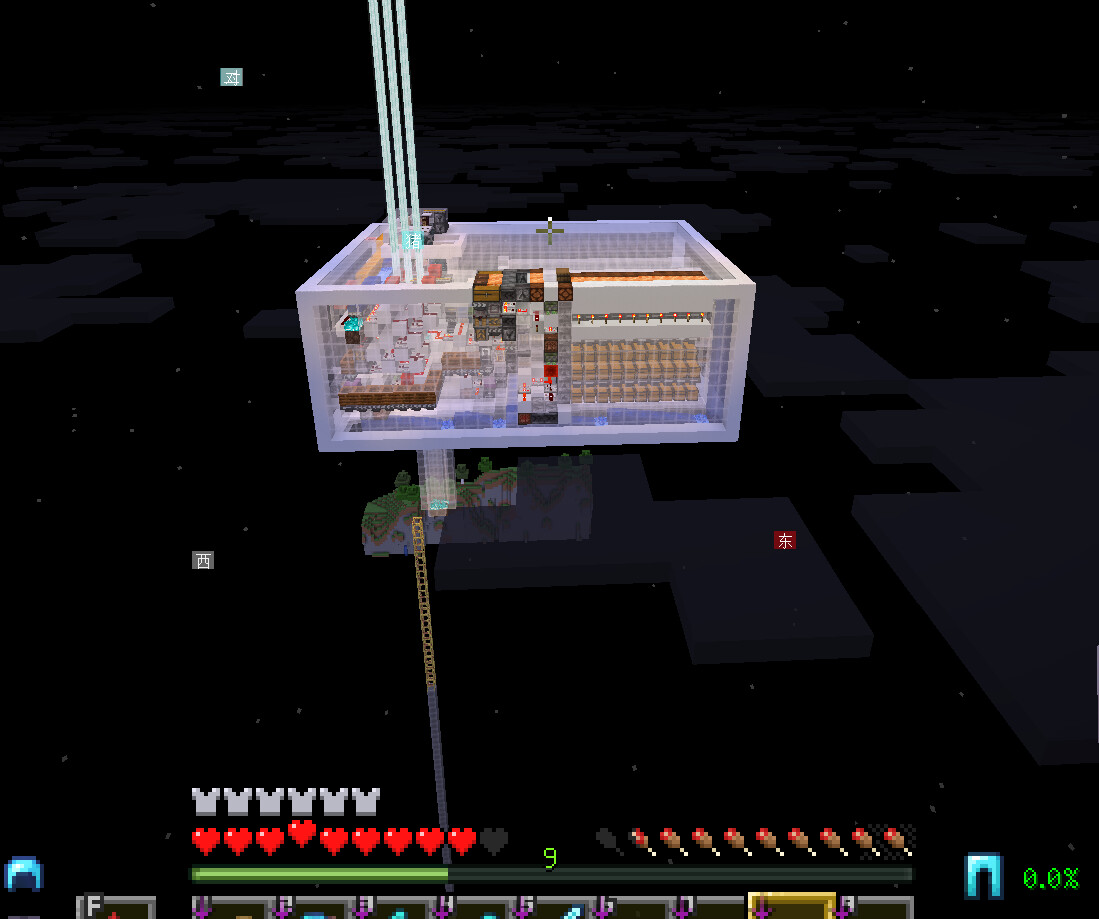 我还以为是版本更新导致的问题,一度想把传送门阵列从33x33减少到31x31,但在创造档粘贴出来收集进行测试,这样会导致效率减少几万,而且在生存中施工拆黑曜石也不太现实。