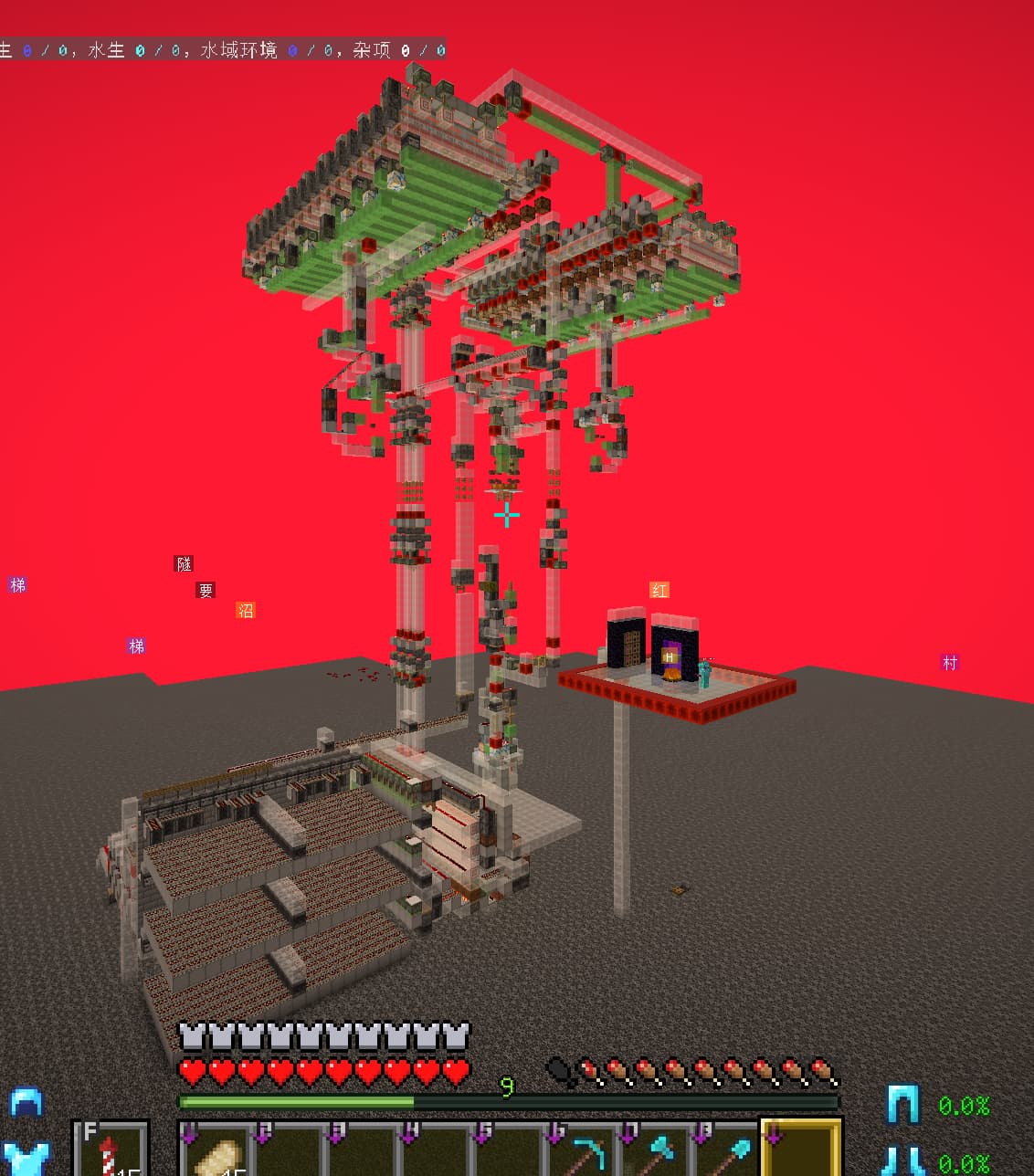 上次实装堆门猪人塔因为对门没有对好,耗费了大量时间来清理生成的地狱门。这次在建造猪人塔本体之前,先在主世界把对应坐标的收集装置的地狱门建造出来,这样在建造过程中即使有实体意外进入地狱门,也不会在主世界生成多余的地狱门。