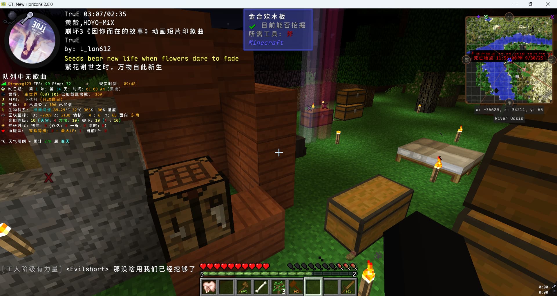 工业区里主要更新了抗卸载飞行器瓜田、小型甘蔗机、无白名单320倍速熔炉,还有药水史莱姆的前置科技-地狱疣农场。作为前期的工业区,这个存档的发展思路比以前好多了,没怎么浪费时间在清理地形上。