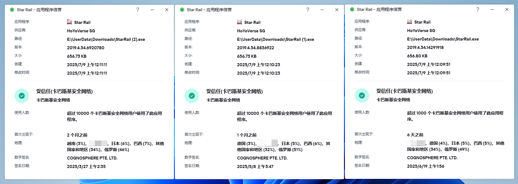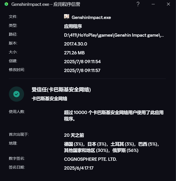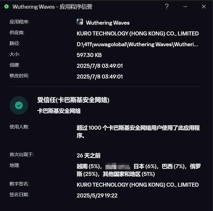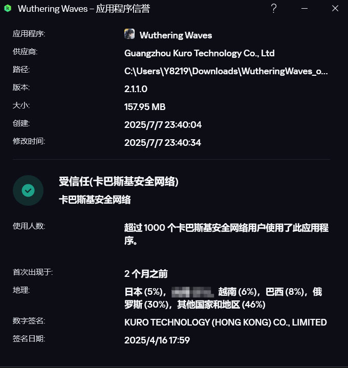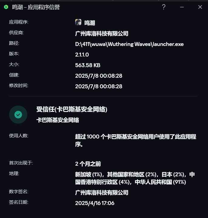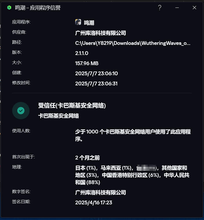 我从国区官网下载了暖暖和wuwa的安装包,进行查询后是这样的两张图,