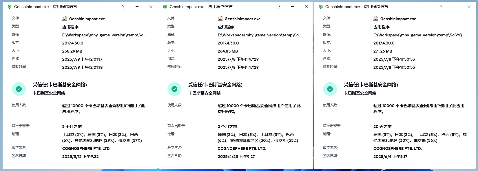 米游近3个版本的国际服游戏主程序的数据,除了俄罗斯的比例断层的高,感觉没有其他什么有效信息了