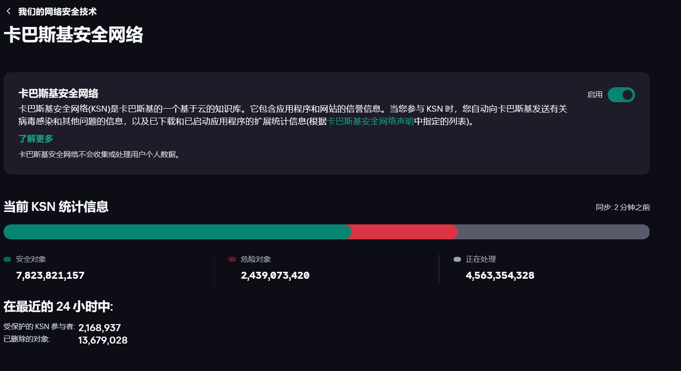 ksn 即Kaspersky Security Network的缩写,是由卡巴斯基(Kaspersky)杀毒软件提供的云病毒查杀服务。官网上关于ksn的说法比较晦涩难懂,其实用户加入ksn网络后,ksn就会收集用户计算机中有关运行软件的数据,并将其上传回云端,以利于卡巴斯基分析,卡巴斯基可以用它来对抗病毒,而我们可以用它来分析数据。