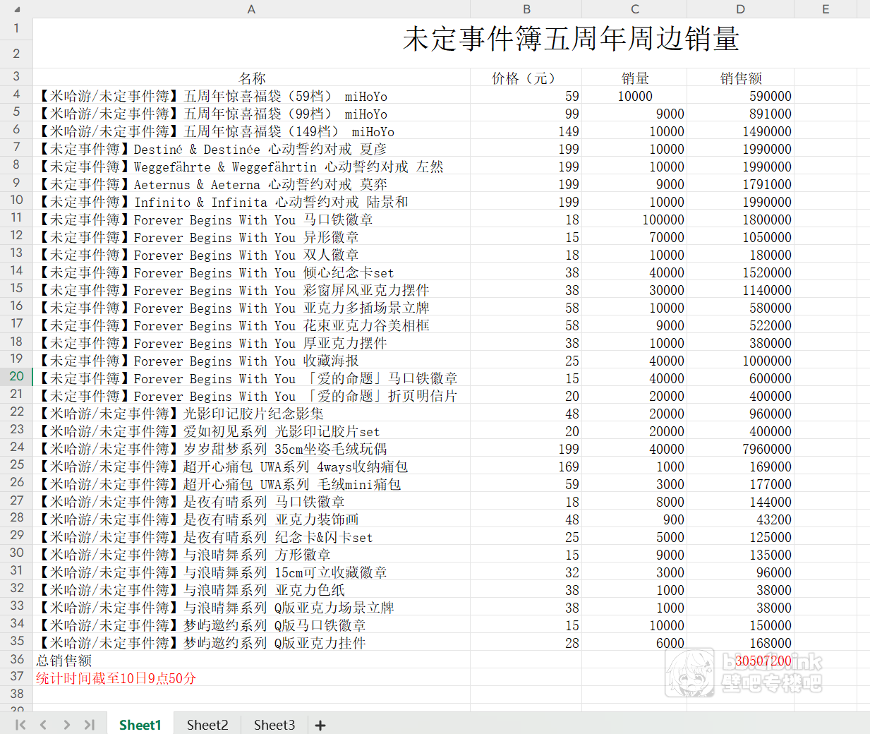 截至日期为8月10日9点50分,总销售额累计约3050万元