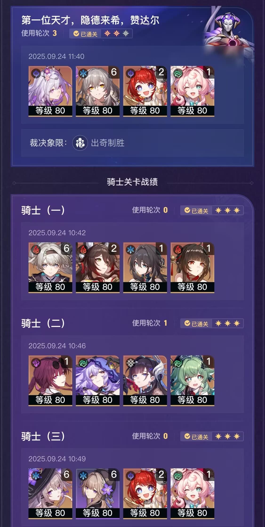 61萤61猫专忘63罗专灵555同协主只能2t王棋450行动值左右,感觉如果光锥叠满排好轴有一丝机会。看了看b站有个65萤65忘64罗专灵6阮带叠2大月卡281行动值卡线0t。击破这个第四人还是太尴尬了
