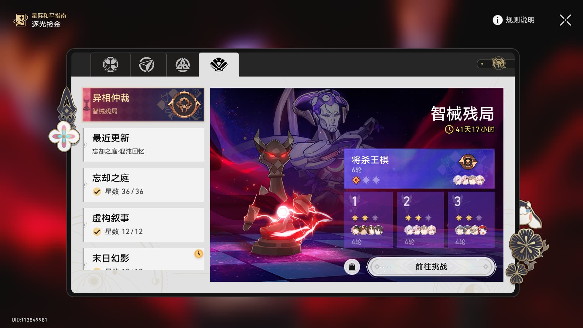 (因为3.7版本准备抽2+1昔涟,后面还要给忘归人、灵砂和卡芙卡补6魂,再加上大象和三象也有要抽的,实在抽不出资源了),好气啊,要是这个时候能复刻忘归人和灵砂该多好(所以以后再出萤宝队友必须第一时间6+1,血的教训,等复刻太难受了),所以有崩铁大佬帮忙打满最后一颗星吗吗?