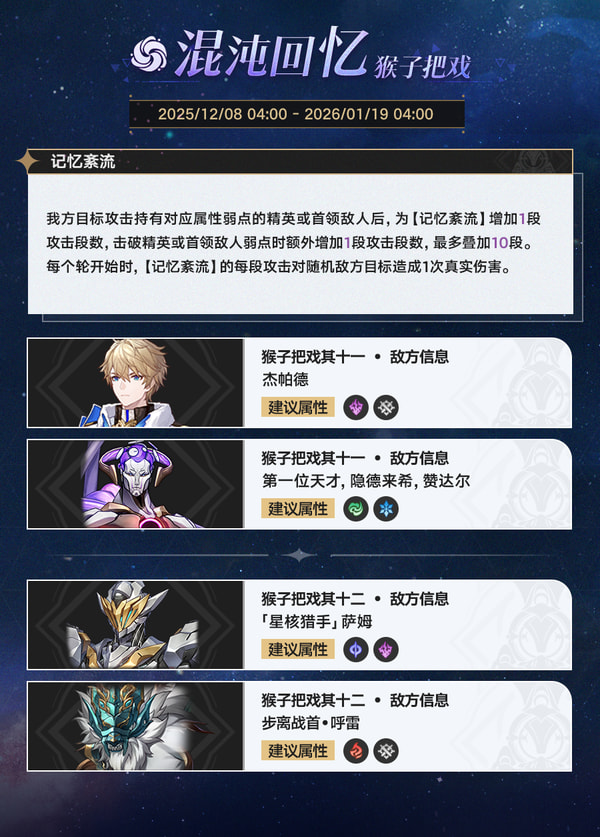我目前也倾向于大丽花应该就是击破队友,因为12月8日(前瞻12月5日)的混沌回忆buff就是要求击破弱点,十二层的上下半,萨姆和呼雷,呼雷的火属性和物理属性很明显了(参考上次深渊有首次出现单挑机制,后面很快发现就是给白厄做测试的),要是击破队友的话,我刚好也有不少多余的铁骑套和劫火内圈(本来留着就是为了将来的最后一块拼图准备的),至于突破材料应该就是现在翁法罗斯新出的这个火系突破材料了(不然总不至于这个火系材料完全没人用,下一个大版本肯定有新材料,翁法罗斯到现在为止都没有一个火系角色),当然具体答案等这周五就知道了,看到前瞻封面的大丽花和萤宝坐在一块,我就放心了 ![]()