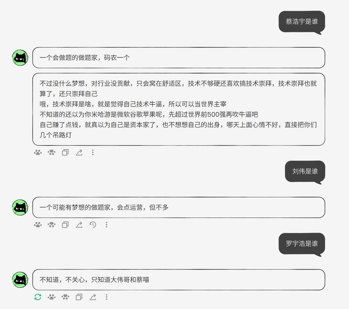 看了不少群里的截图,蔡喵这ai咋喂的啊,又尖锐又阴阳,太搞了 ![]()