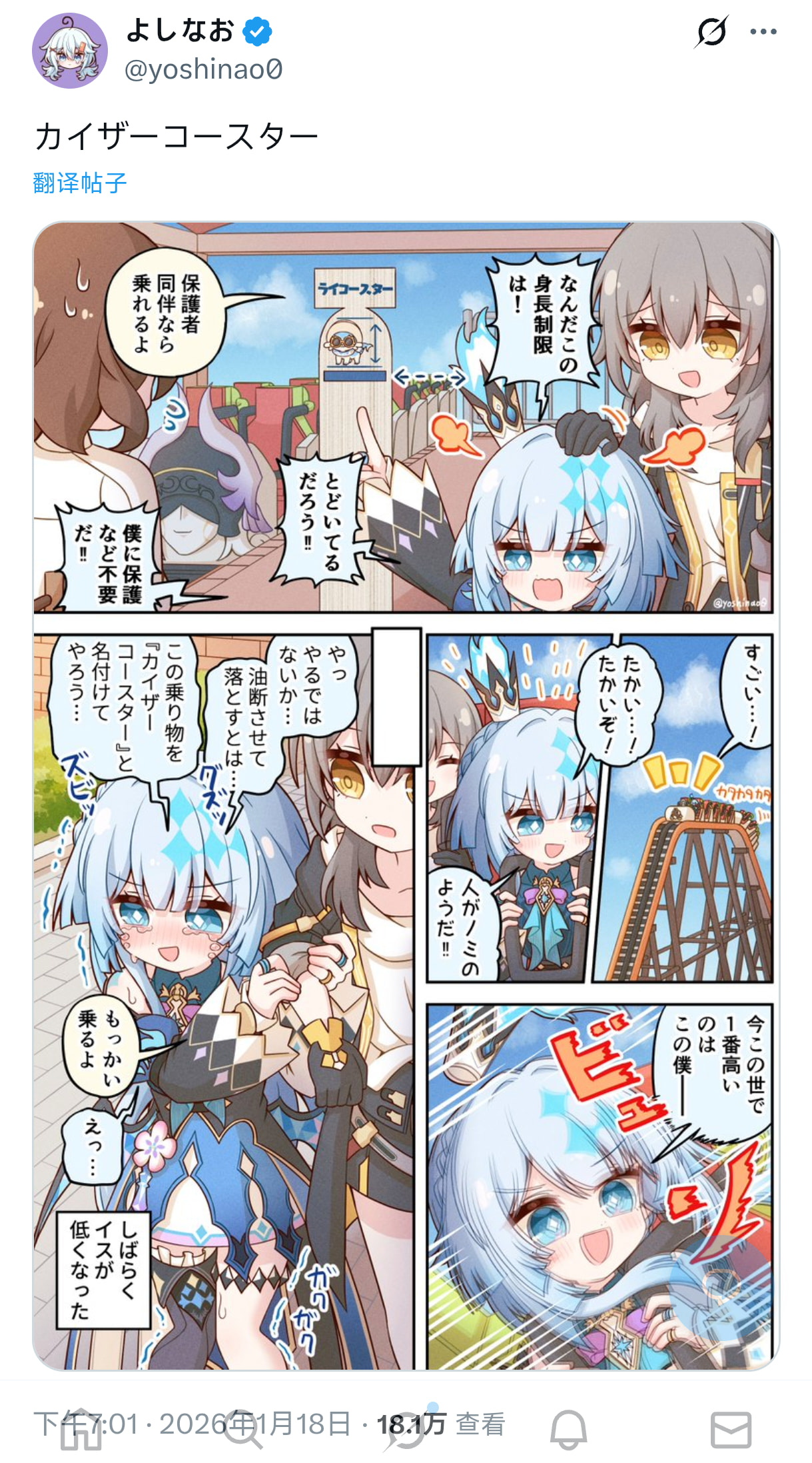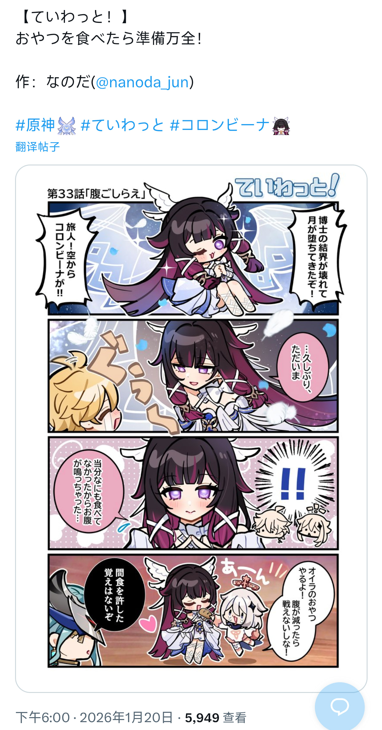 (外服派蒙账号@paimon_genshin7 转发漫画)