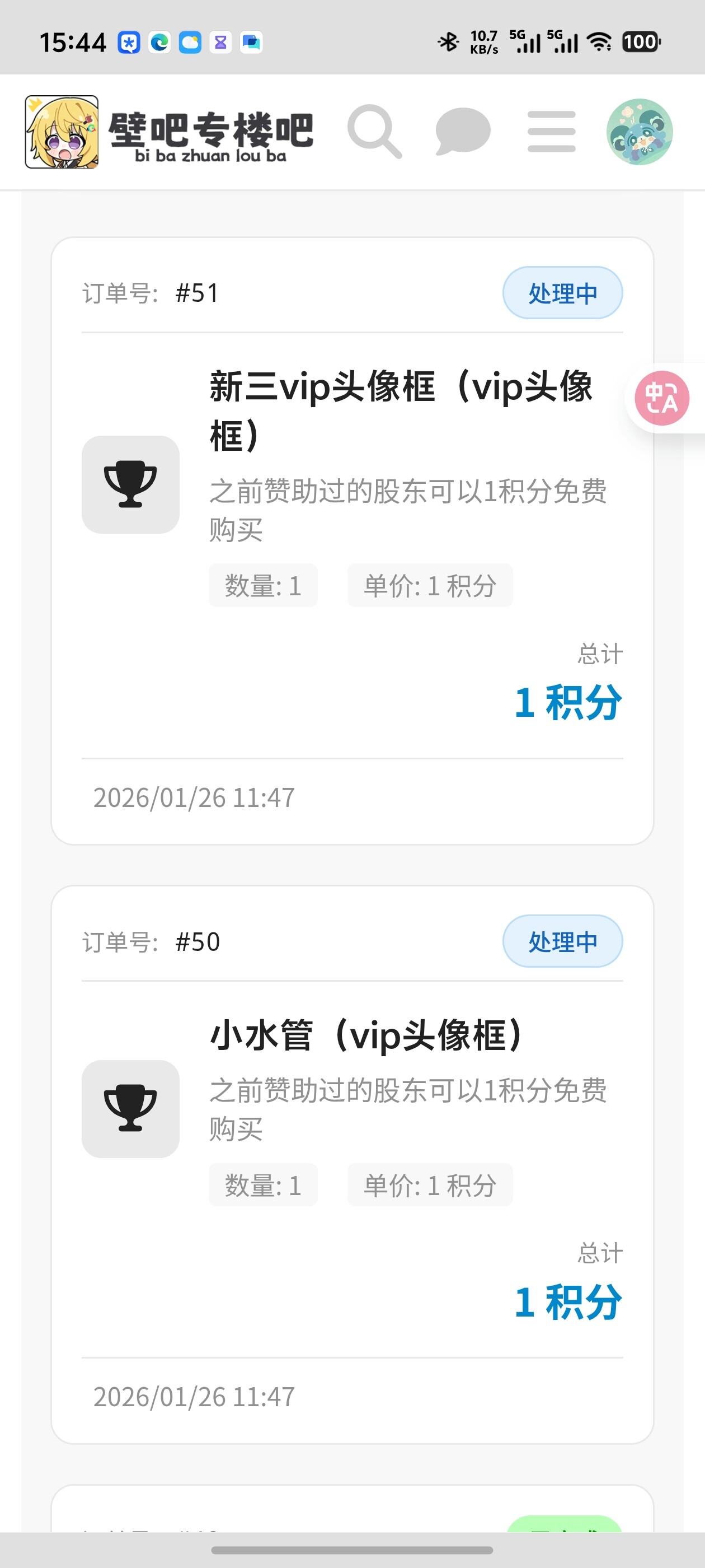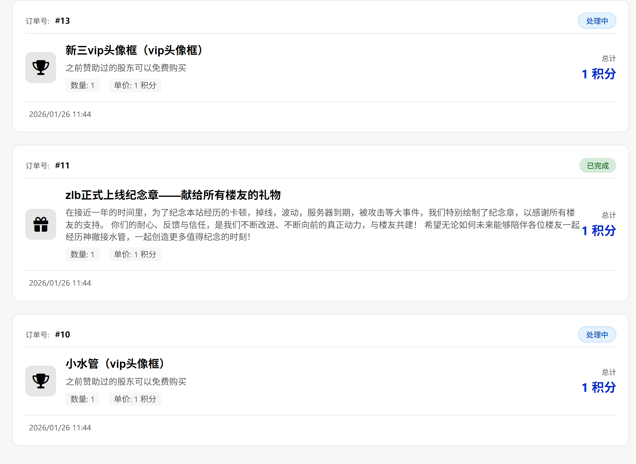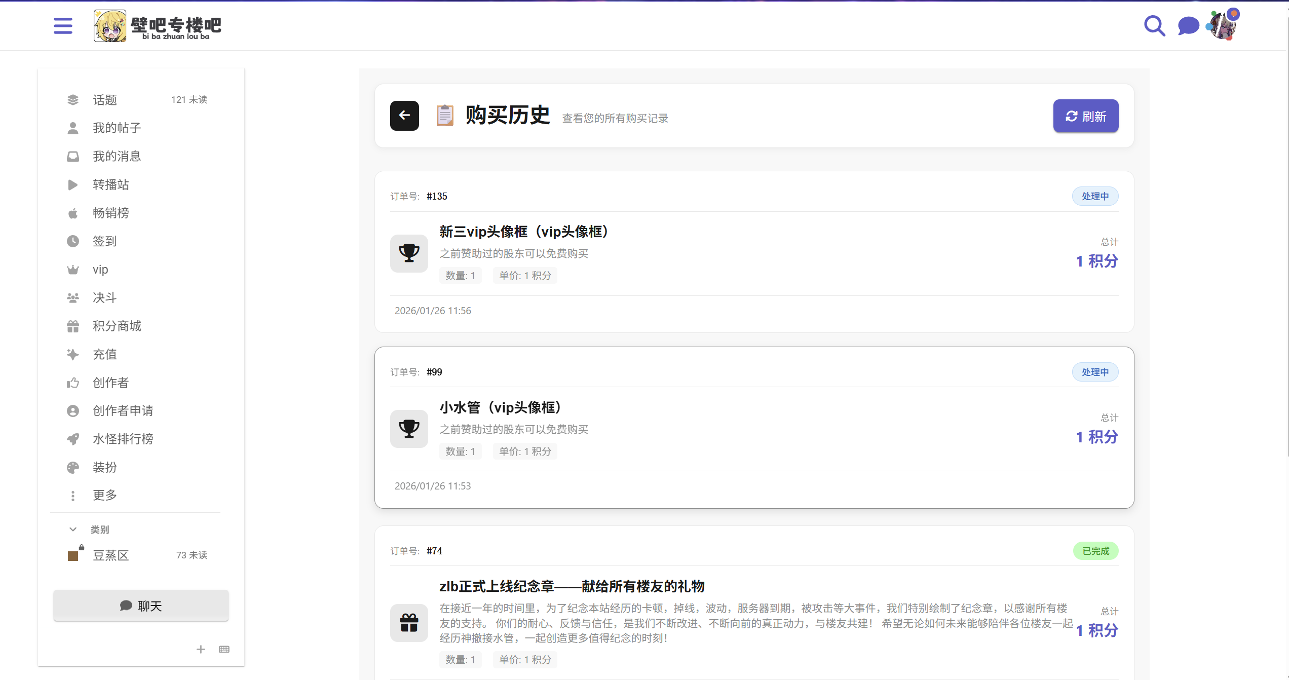 之前一直是处理中,然后刚刚查看购买记录全部消失了是什么情况…