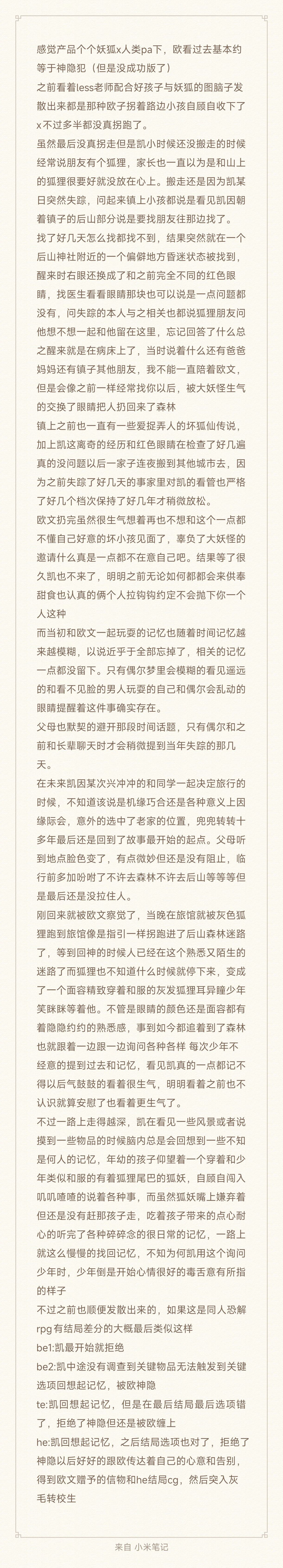 毕竟妖怪啊怪谈感觉也是一体俩面,我是单纯考虑产品谈恋爱和个人xp好孩子和妖狐那种神隐但未成功故事,相对来说倾向更加是那种经典看的很多日恐解谜开头的回搬走之前乡下老家遇到童年邂逅的妖怪大人,其实我压根没考虑过死亡结局!
