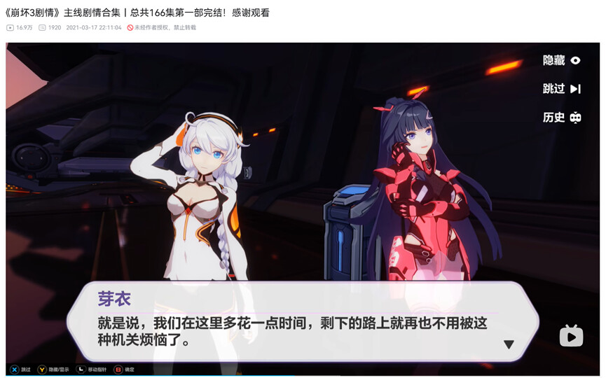 到了崩坏三第二部,受限于项目规模和堆满了“屎山代码”的游戏引擎,也没能完全摆脱Galgame式的对话风格。